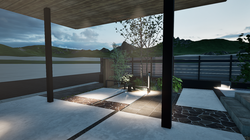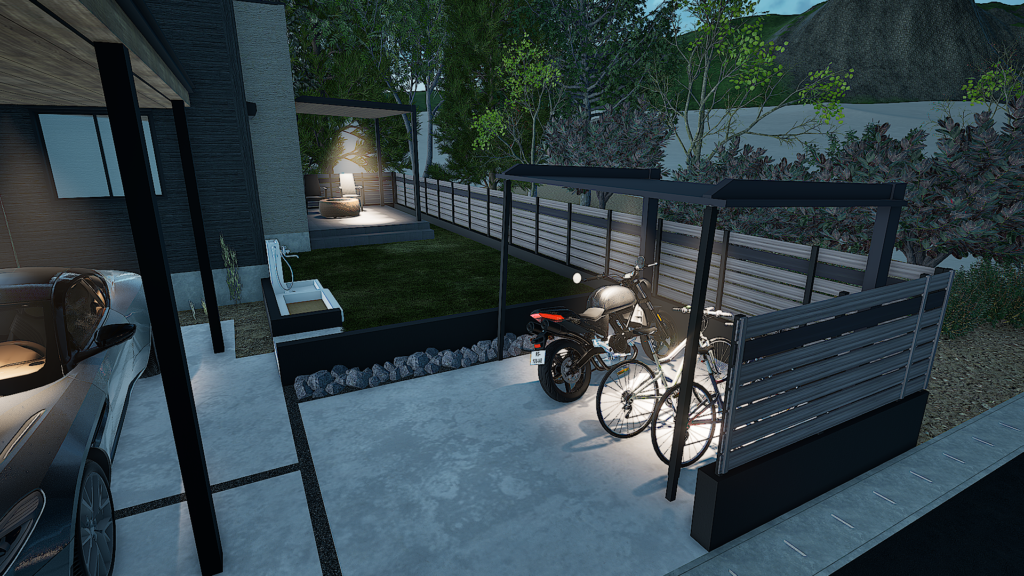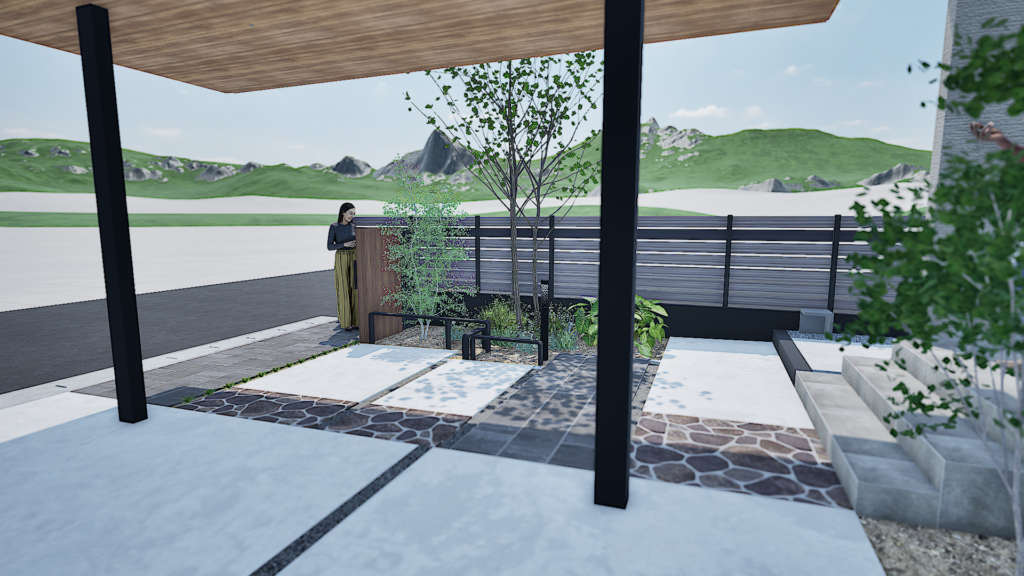 箇所事に、広さを保ちストレスのない空間外構に仕上げてみました